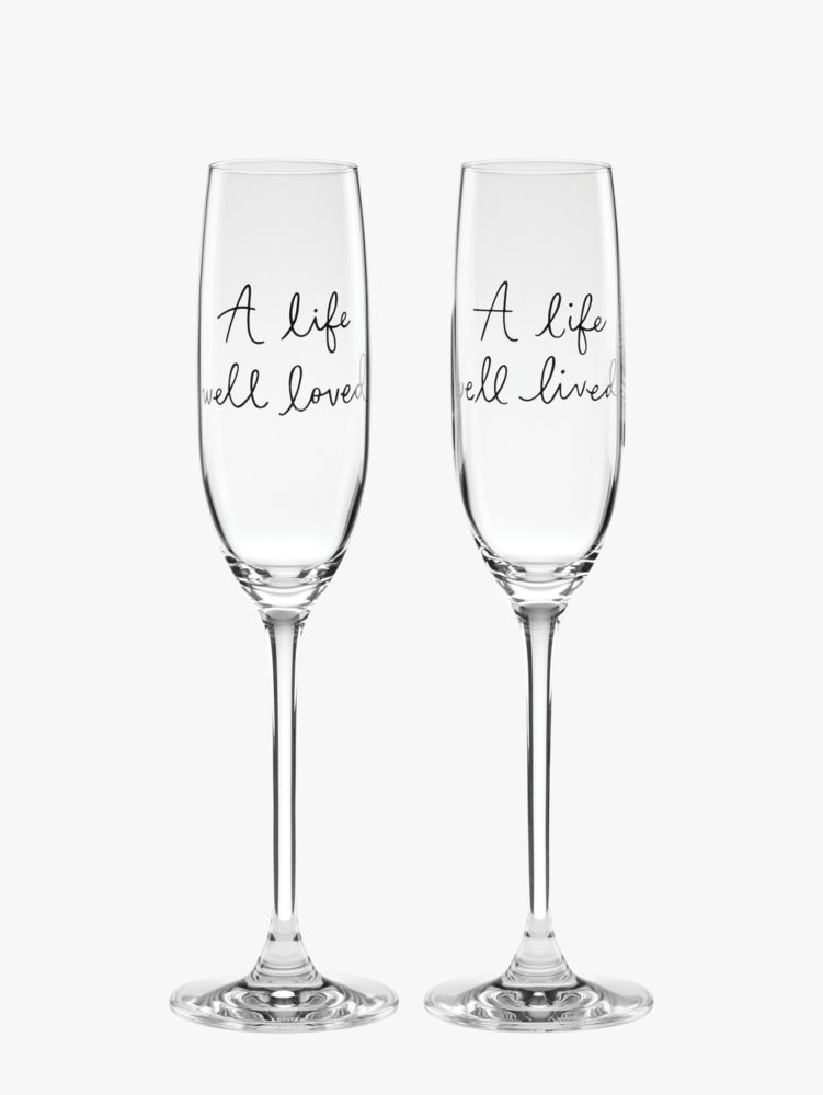 Kate Spade,A Charmed Life Toasting Flute Pair,Champagne Glass,Glass,Words,Clear