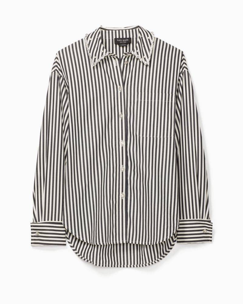 Kate Spade,Acrobat Stripe Embellished Shirt,Cotton,Button Down,Rhinestones,Button,Work,Multi Color