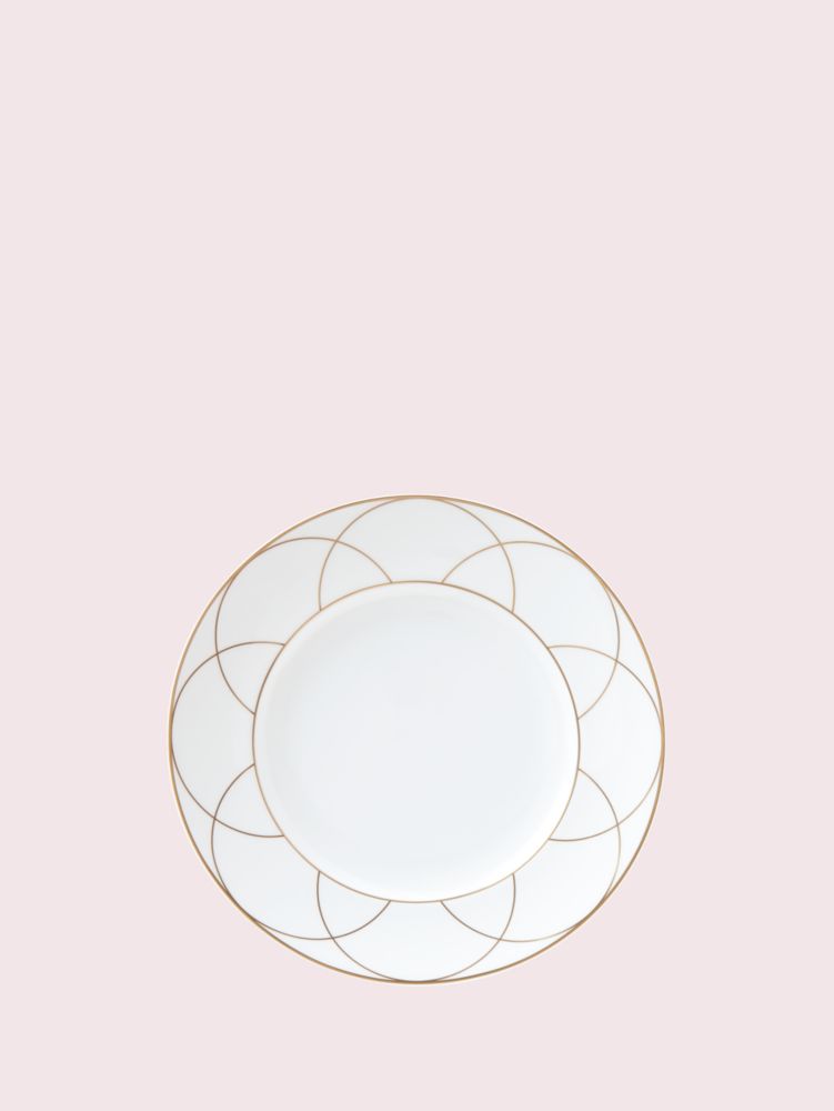 this salad plate is from our arch street collection. it's made from fine bone china and finished with a golden motif inspired by the curves and symmetry of a wire sculpture. we think it's so elegant and modern and perfect for your next special gathering (or a normal weeknight meal).