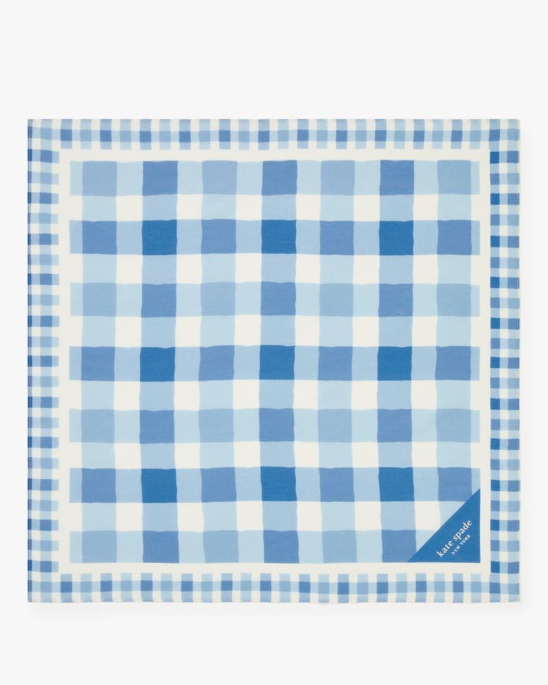 A perfect day at the beach—or just a day dreaming of the sea—is topped off by this plaid silk bandana.