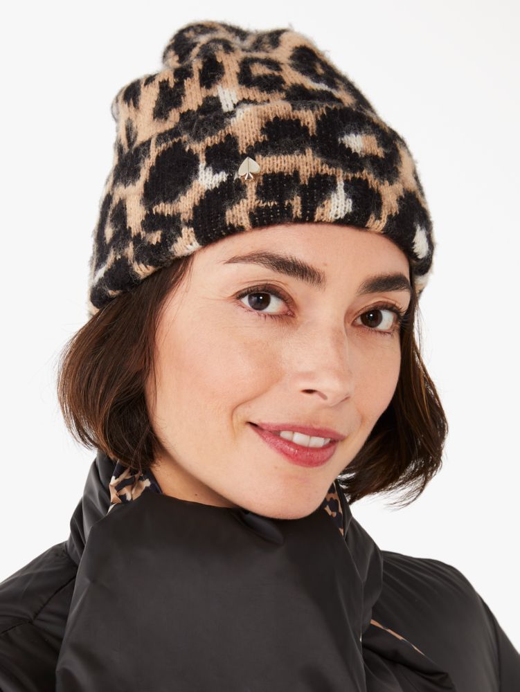 you'll feel fierce in this brushed leopard-print beanie.