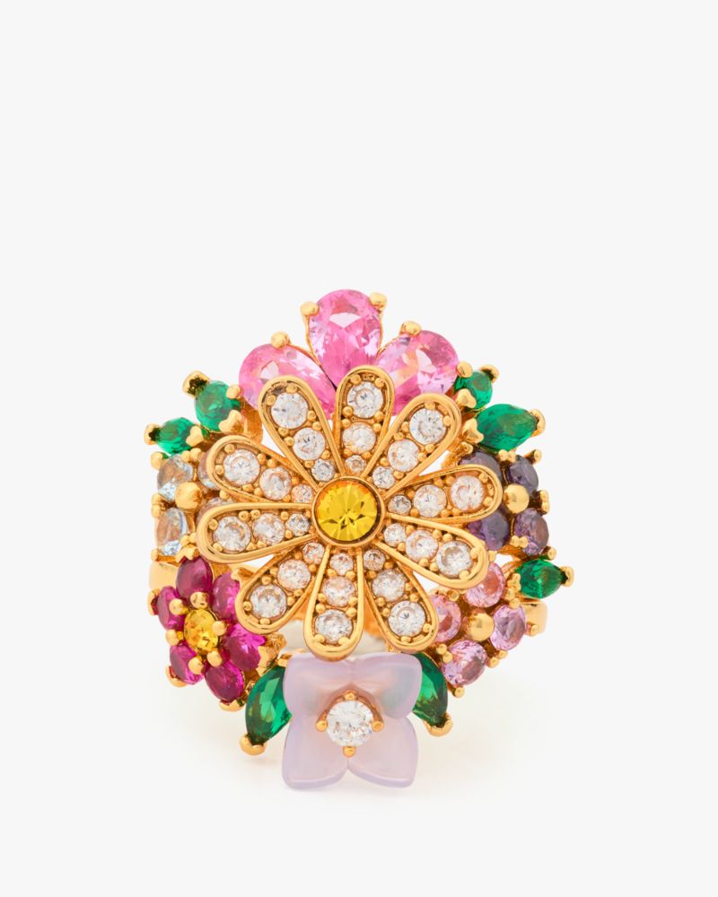 This crystal-embellished cocktail ring adds a flowery pop of sparkle to your look.