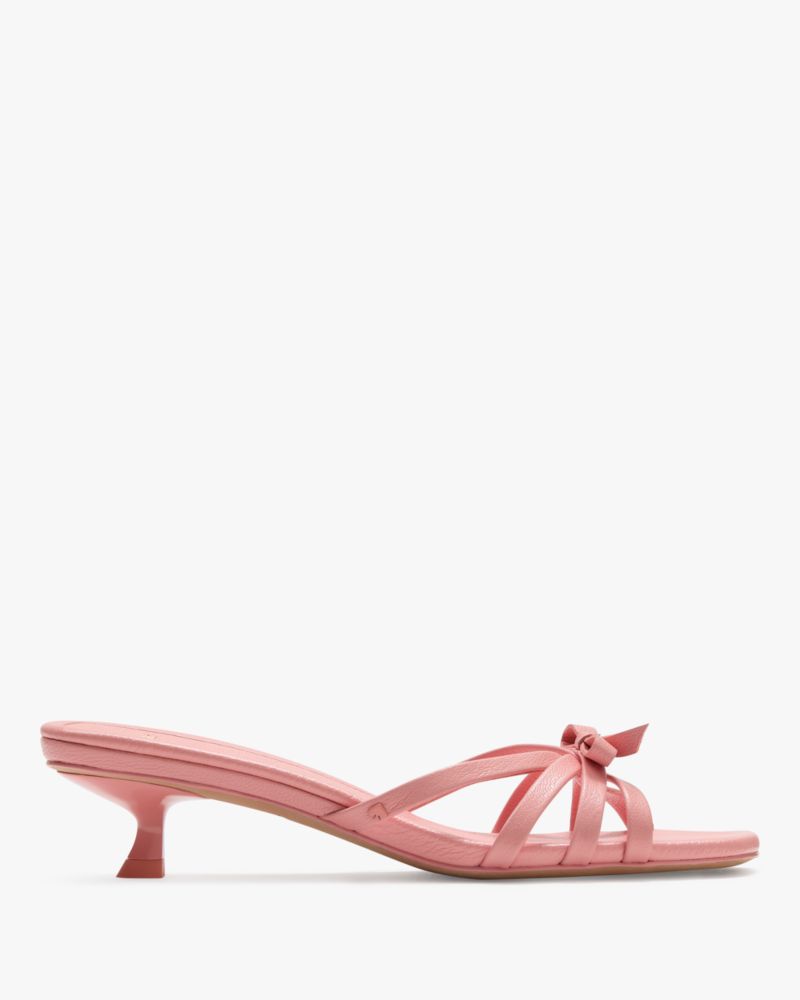Kate Spade,Carolina Kitten Heel Sandals,Rubber,Leather,Lining Leather,Slides,Caged,Bow,Pull Tab,Day Party,Pink