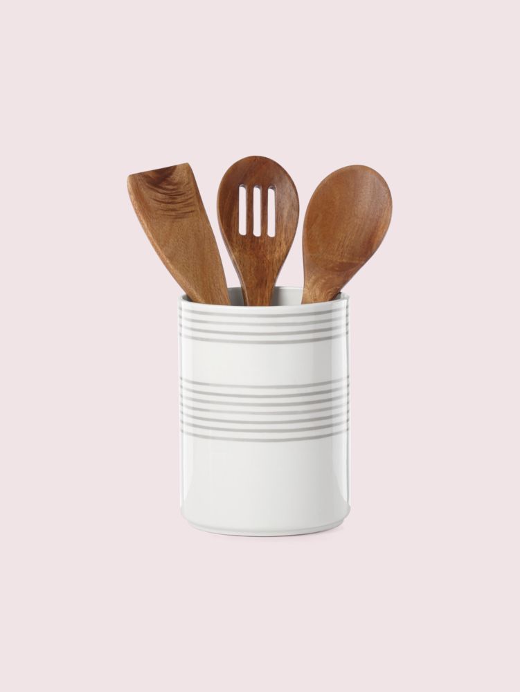 Kate Spade,Charlotte Street Utensil Crock With Servers,Cooking Spoon,Cooking Spatula,Utensil Holder,Porcelain,Wood,White