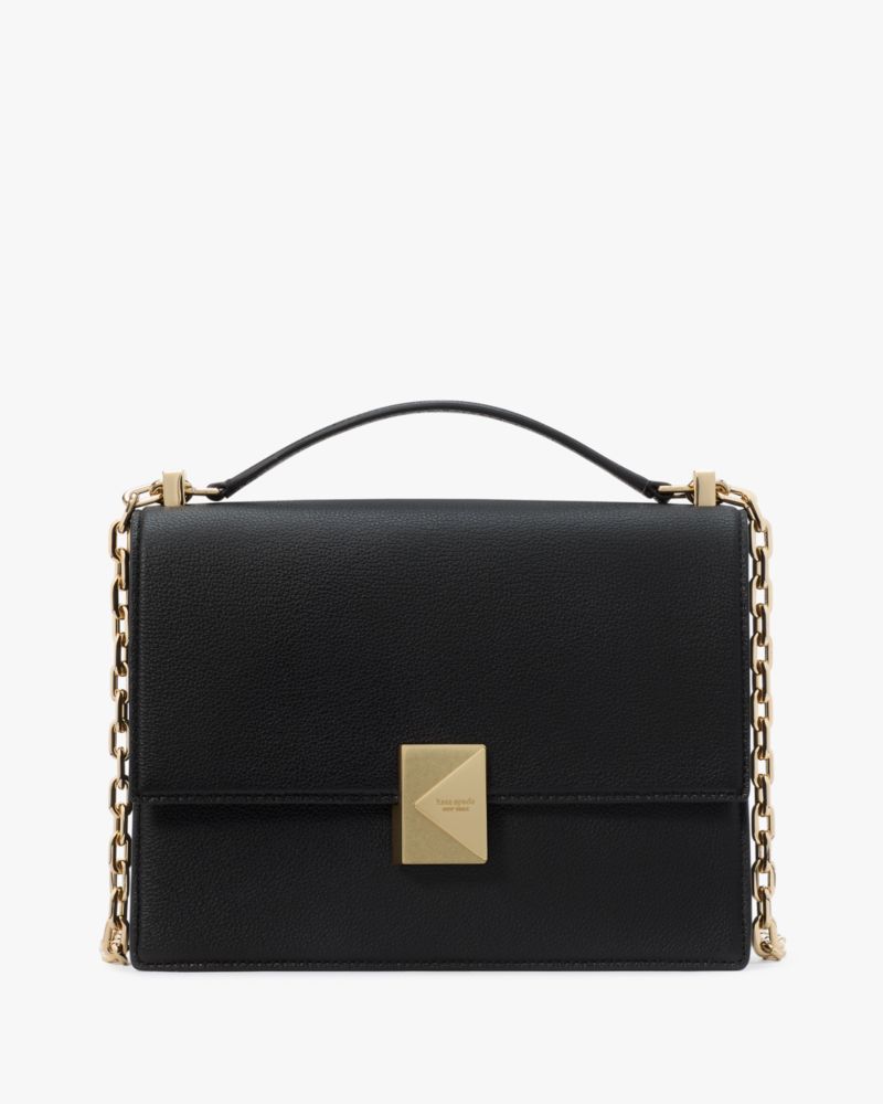 Kate Spade,Deco Chain Shoulder Bag,Leather,Crossbody,Metal,Logo,Adjustable,Gold Metal,Casual,Day Party,Black