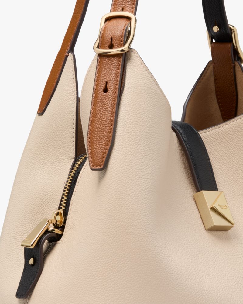 Perennially chic with luxe finishing touches, our Deco collection features elevated staples for both everyday and special occasions. This crossbody tote is made from colorblocked pebbled leather with our new K hardware inspired by Art Deco style.