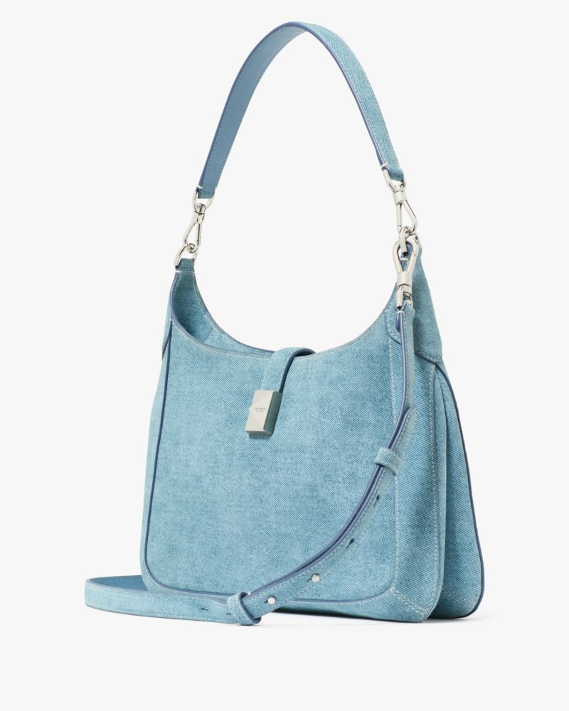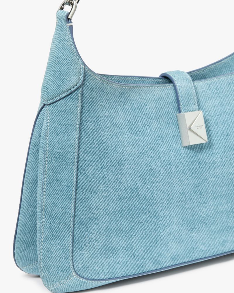 Perennially chic with luxe finishing touches, our Deco collection features elevated staples for both everyday and special occasions. This sleek hobo bag is made from luxe denim suede, with K hardware inspired by Art Deco style.