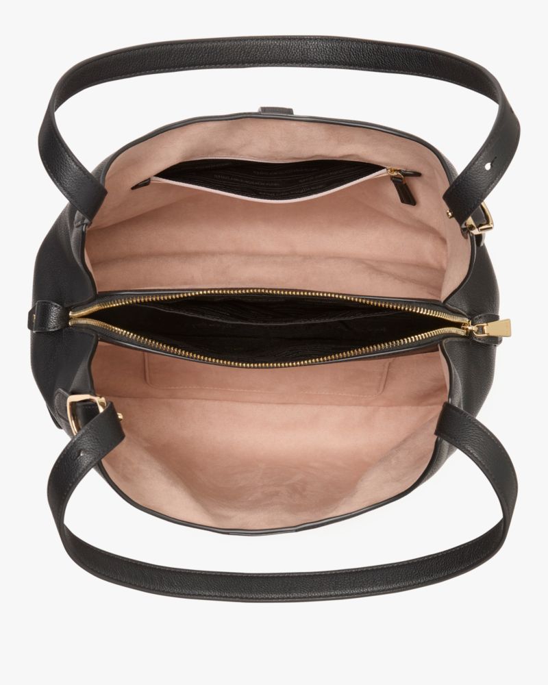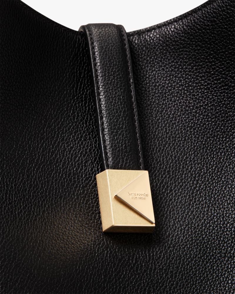 Perennially chic with luxe finishing touches, our Deco collection features elevated staples for both everyday and special occasions. This roomy shoulder bag is made from colorblocked pebbled leather with our new K hardware inspired by Art Deco style.