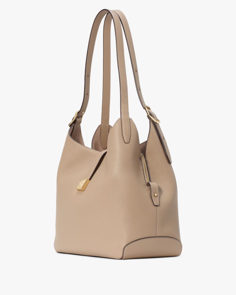 Kate Spade,Deco Large Shoulder Bag,Leather,Shoulder Bag,Logo,Metal,Casual,Beige