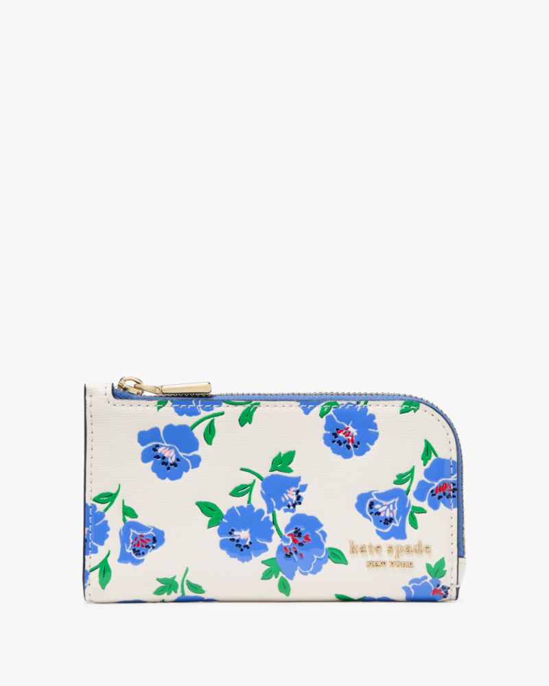 Kate Spade,Devin Springtime Blooms Small Slim Bifold Wallet,Bi Fold,Logo,Metal,Casual,White