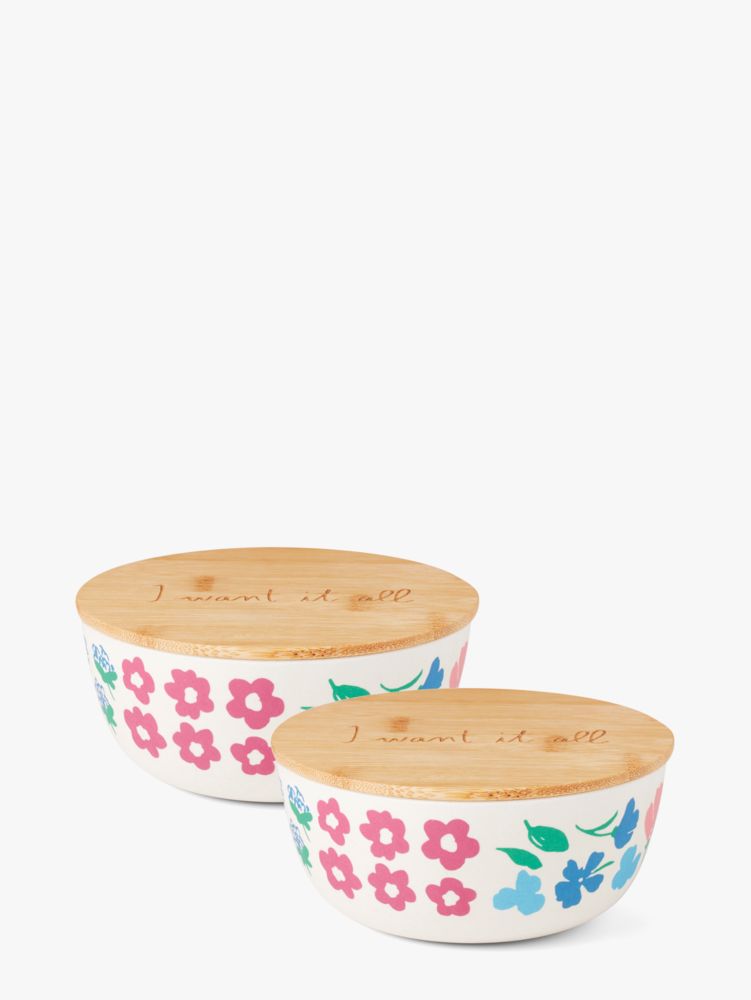 Hey, good looking. These pretty floral containers are perfect for storing and toting (thanks to the bamboo lids) whatever you've got cooking.