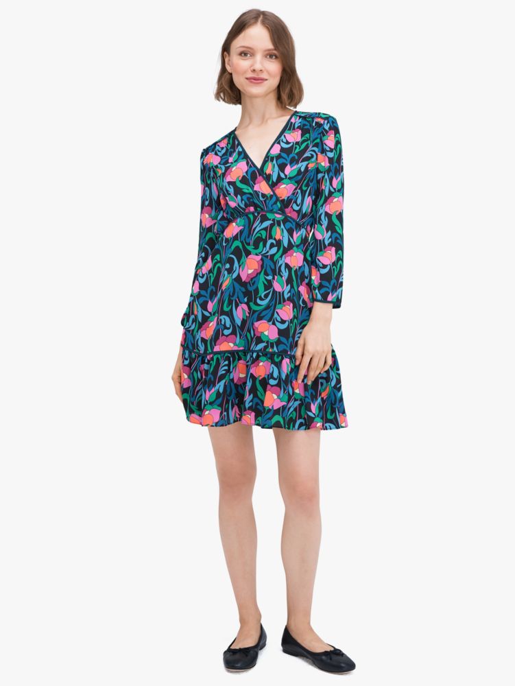 Let me tell you how much I LOVE this dress! The colors are amazing! They pop! I literally felt like a walking piece of art in this dress. The design is beautifully done and very well made. It has a lining which I appreciate very much at my age. Kate Spade does not disappoint on this one.