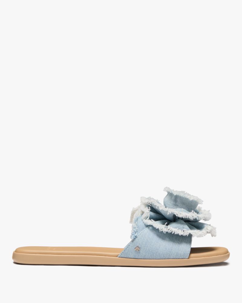 Let your look flourish with these denim sandals featuring statement-making rosettes.