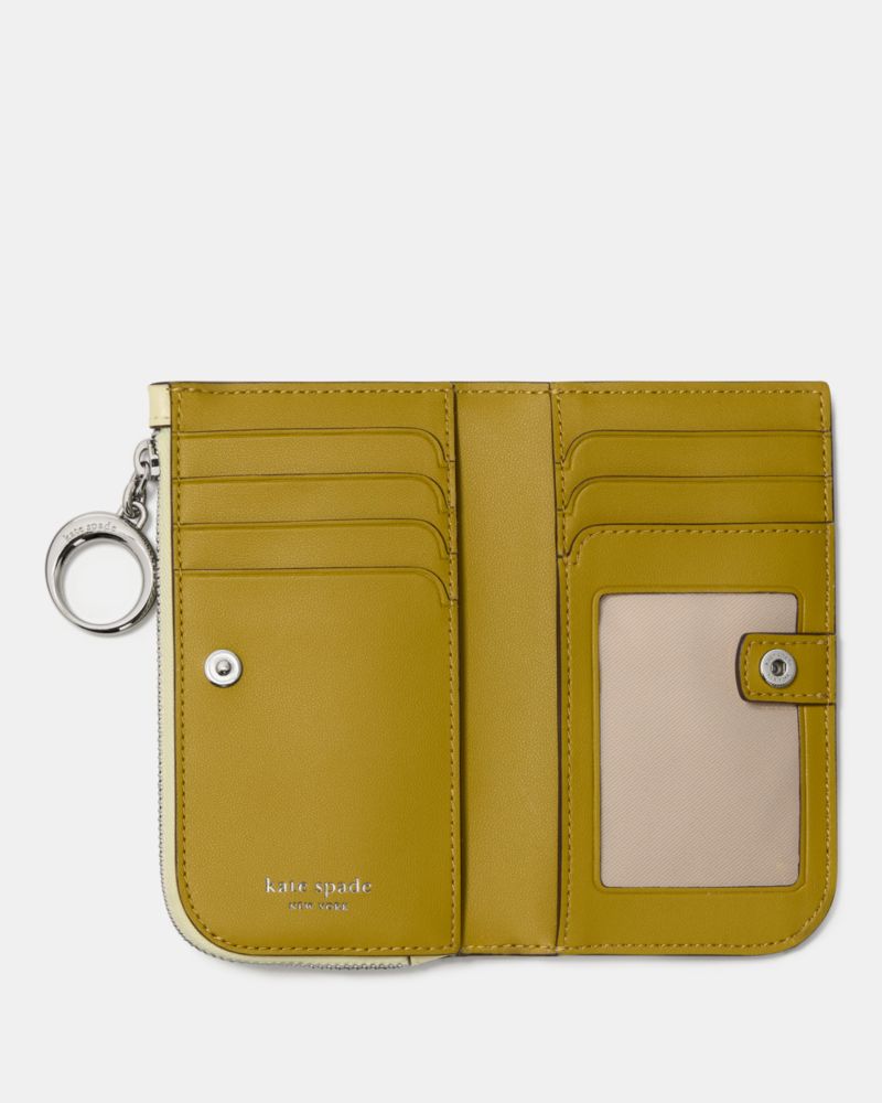 Our Halo collection is named for its unique ring-shaped hardware—an archival detail that dates back to Kate and Andy Spade's early days in business. This sleek bifold wallet in smooth leather is a perfect complement.