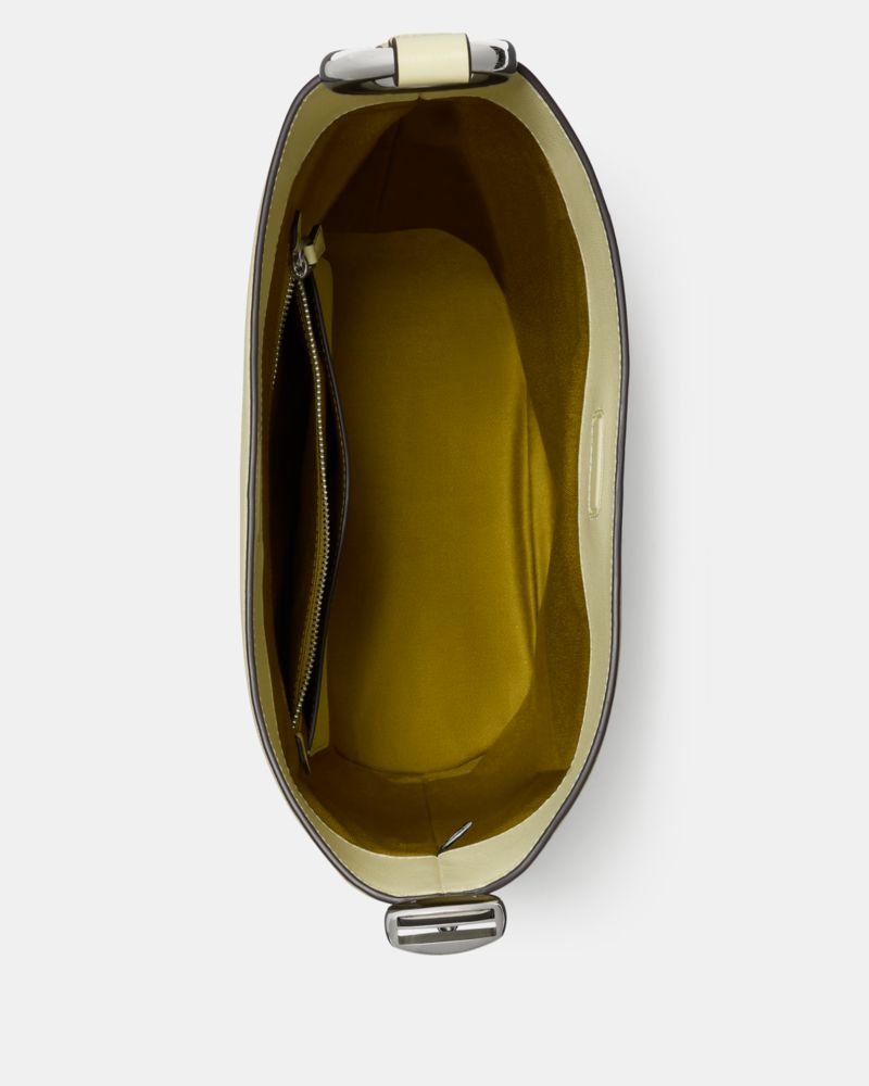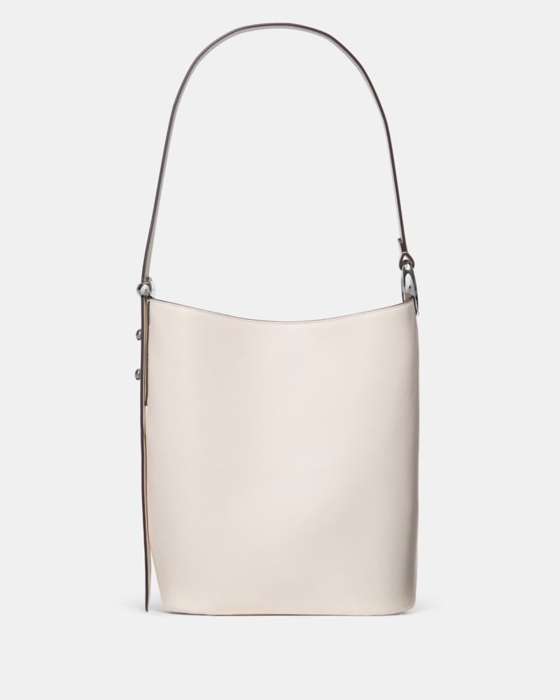 Our Halo collection is named for its unique ring-shaped hardware—an archival detail that dates back to Kate and Andy Spade's early days in business. This fine grain leather bucket bag features an adjustable strap, allowing you to go from crossbody to your shoulder in a snap.