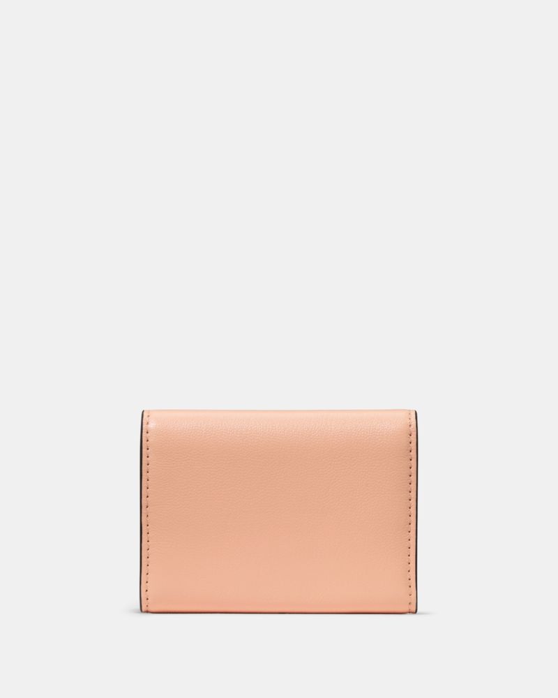 Our Halo collection is named for its unique ring-shaped hardware—an archival detail that dates back to Kate and Andy Spade's early days in business. This sleek trifold wallet in smooth leather is a perfect complement.