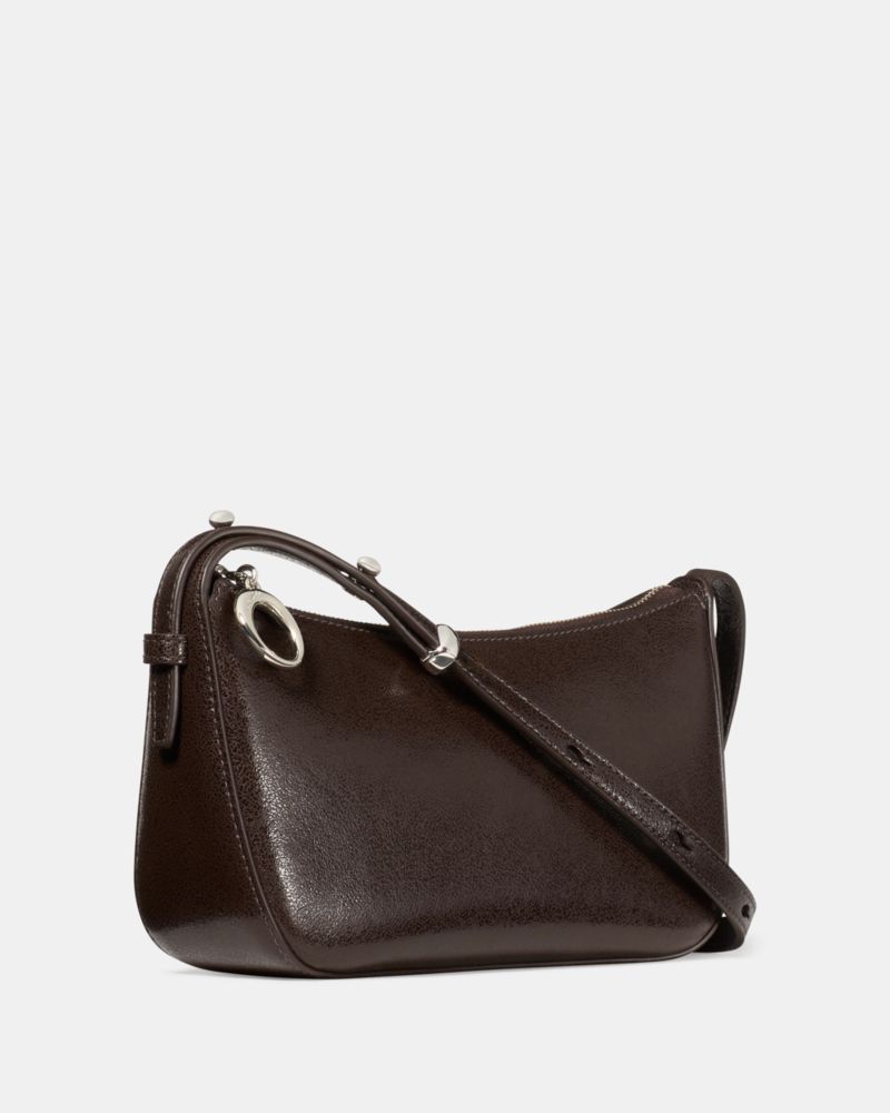 Our Halo collection is named for its unique ring-shaped hardware—an archival detail that dates back to Kate and Andy Spade's early days in business. This petite crossbody in glossy glazed leather is a perfect complement.