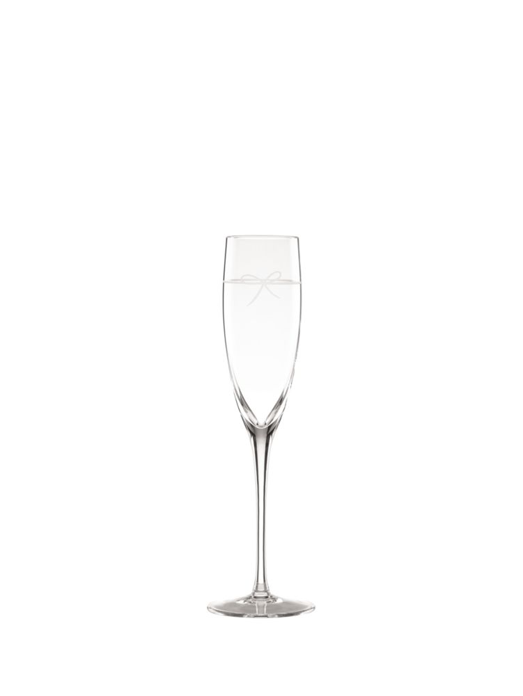 tie one on: this elegant flute, decorated with a delicate bow, is the ideal vessel for your favorite bubbly.