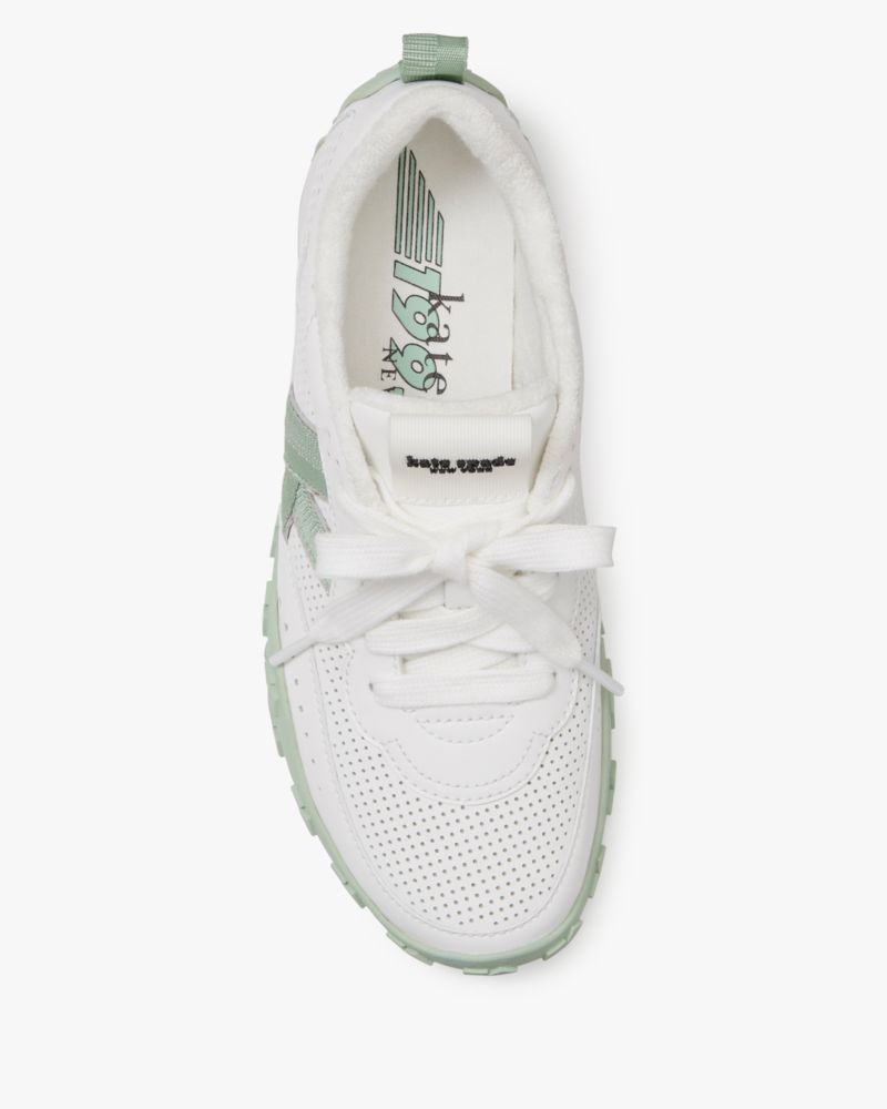 Statement shoes are always a yes. Our latest pair of designer sneakers are made from mesh-trimmed perforated leather with our signature K logo. These women's sneakers are comfortable, durable *and* stylish: no wonder they’re everyone’s favorite! Our K as in Kate Sneakers feature soft, cushioned soles so you can walk anywhere and everywhere. They complement casual, everyday looks and add a sporty chic vibe to your dressier looks, too. With so many colors and prints to choose from, there's a perfect pair for everyone—white sneakers, color-blocked sneakers, dress sneakers with a fun pop of print...