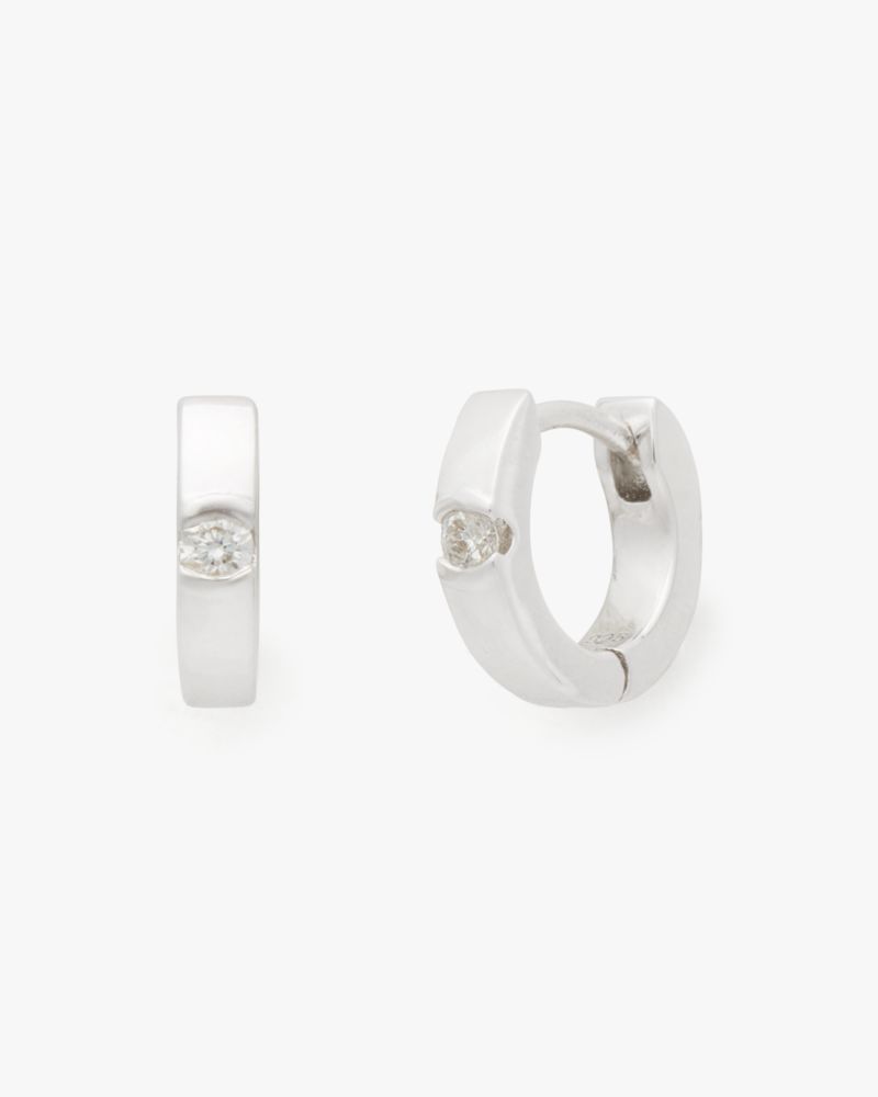 Introducing kate spade Fine, our new collection of gold vermeil and sterling silver jewelry. These special pieces were designed to celebrate both milestone achievements and the little joys in everyday life. These huggies are made from sterling silver and showcases bezel-set lab-grown diamonds for a hint of sparkle.
