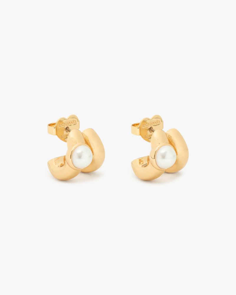 Everything's better with a little shine. Bling it on with our double huggies, adorned with cubic zirconia and glass stone.