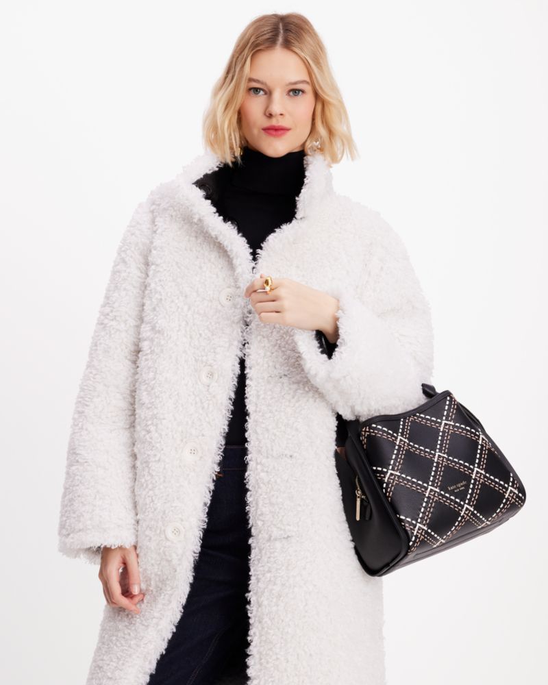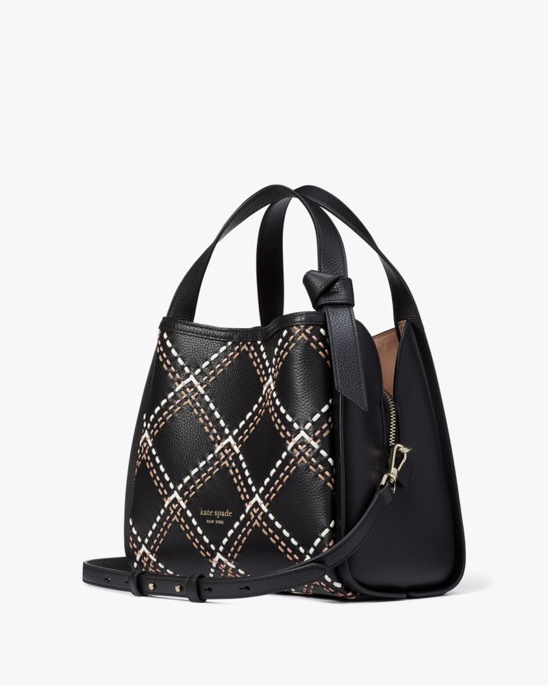Kate Spade,Knott Plaid Stitched Medium Crossbody Tote,Black Multi