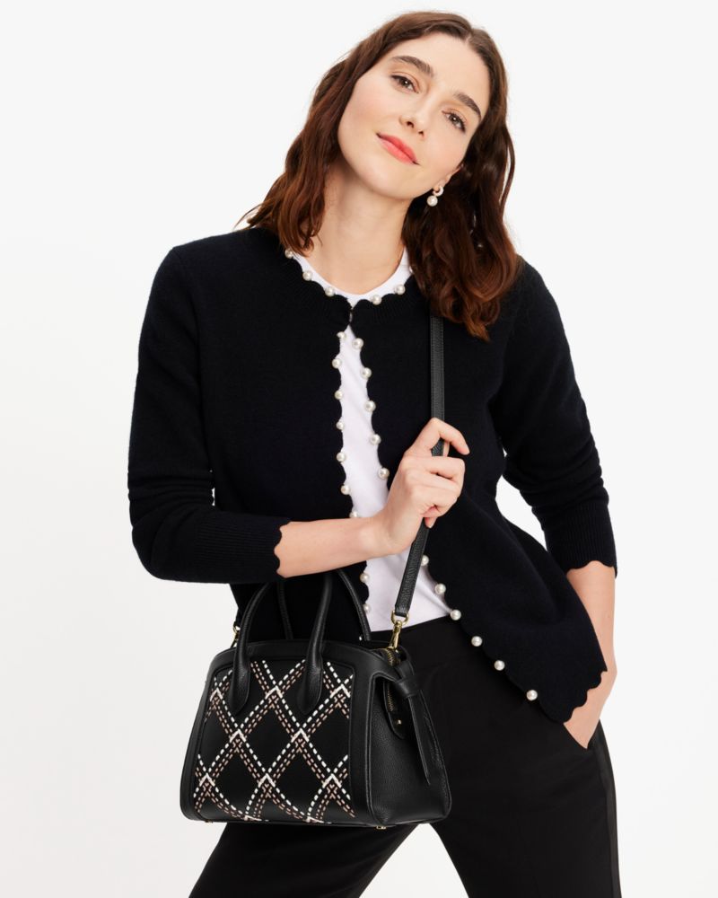 Kate Spade,Knott Plaid Stitched Medium Zip-top Satchel,Black Multi