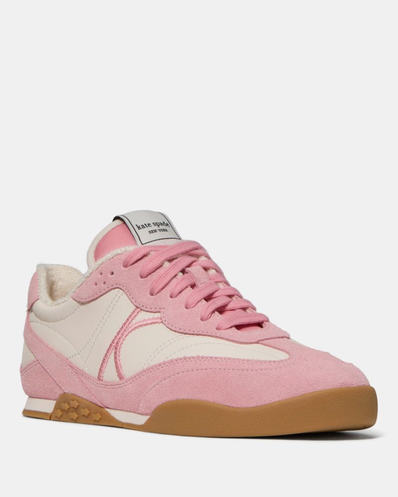 Kate Spade,Ks Drift Sneaker,Rubber,Suede,Mesh,Casual,Low Top,Embroidered,Logo,Mixed Media,Color Block,Pull Tab,Shoelaces,C...,Pink