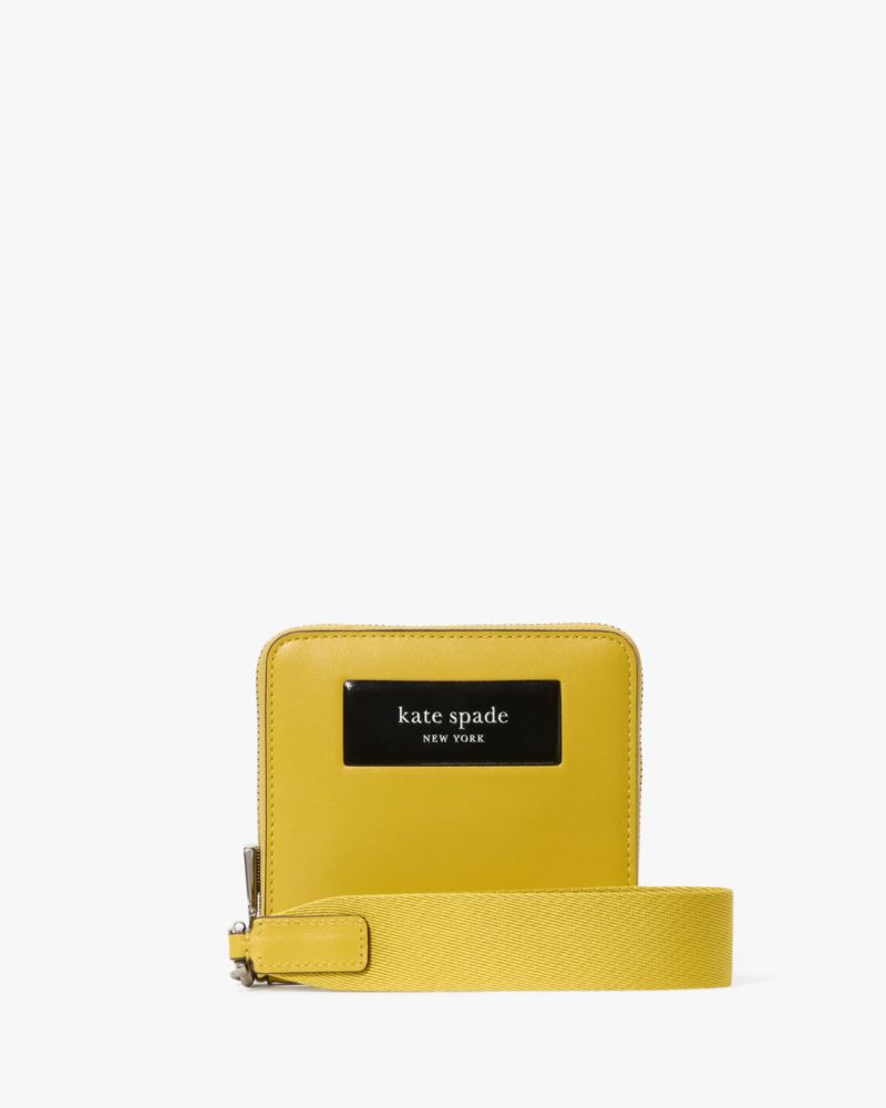 Absolutely love this wallet enough space for four cards a place for money and a small change purse. The wrist strap is comfortable and the hardware is amazing. I have other wristlets but can’t use them as wristlets because the strap falls off and the wallet is on the ground this will not happen with this Kate spade wristlet