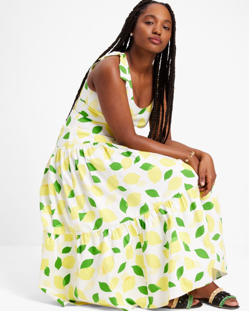 Sunny weather calls for a pretty sundress... reach for this one, made from our Lemon Toss stretch poplin.