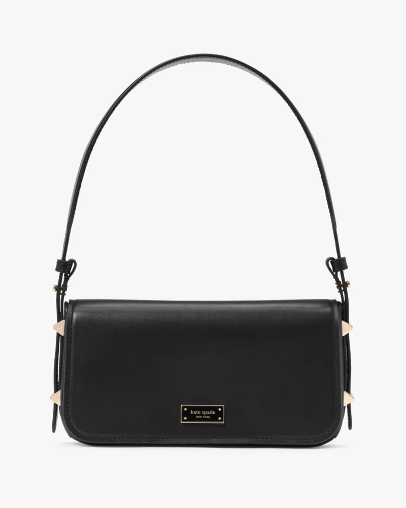 Kate Spade,Liv Shoulder Bag,Leather,Shoulder Bag,Faux Leather,Logo,Metal,Compact,Gold Metal,Casual,Black