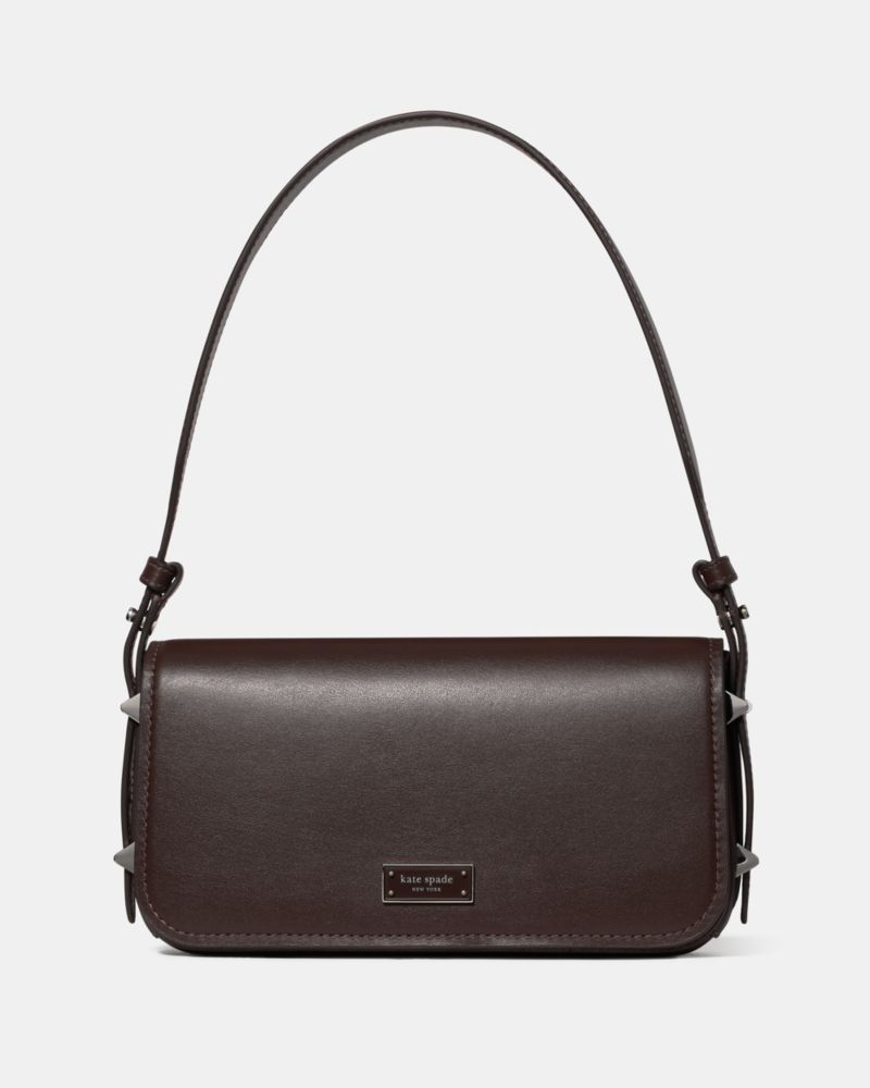 Kate Spade,Liv Shoulder Bag,Leather,Shoulder Bag,Faux Leather,Logo,Metal,Compact,Gold Metal,Casual,Brown