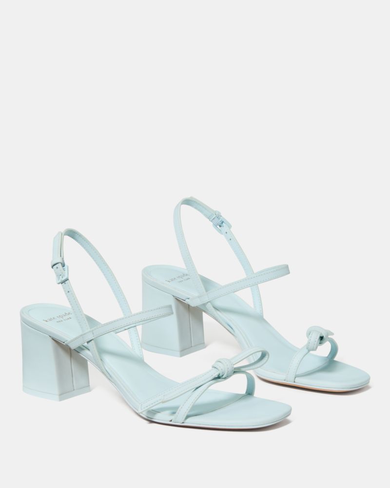 Kate Spade,Loop Block Heel Sandal,Lining Sheepskin,Leather,Sandals,Fabric,Bow,Lightweight,Day Party, Date Night,Blue