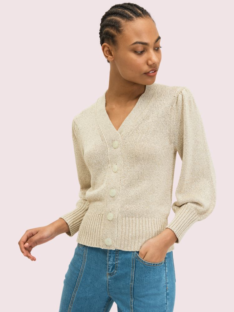 when it's hot outside and freezing in the office, this metallic cardigan's lightweight and breathable knit will do the trick.
