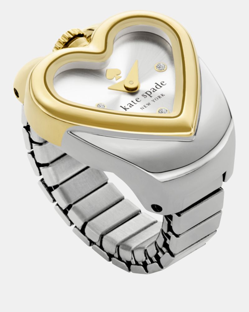 Kate Spade,Monroe Ring Watch,Cocktail,Heart Embellishment,Logo,Stretchable,Mixed Metal,Stainless Steel,Casual,