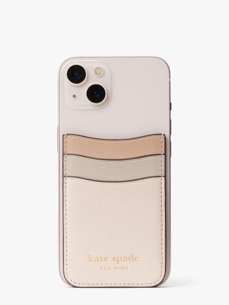 Done in colorblocked Saffiano leather, our Morgan Double Sticker Pocket is durable against drops and scratches, so it'll keep its sleek, luxe look. Stick it to the back of your phone so your I.D. and cards can tag along.