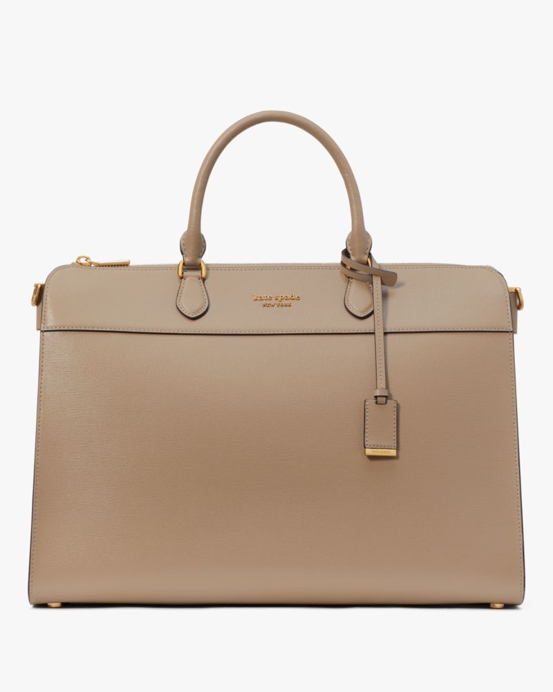 Kate Spade,Morgan Laptop Bag,Leather,Crossbody,Logo,Metal,Scratch Resistant,Work,Brown