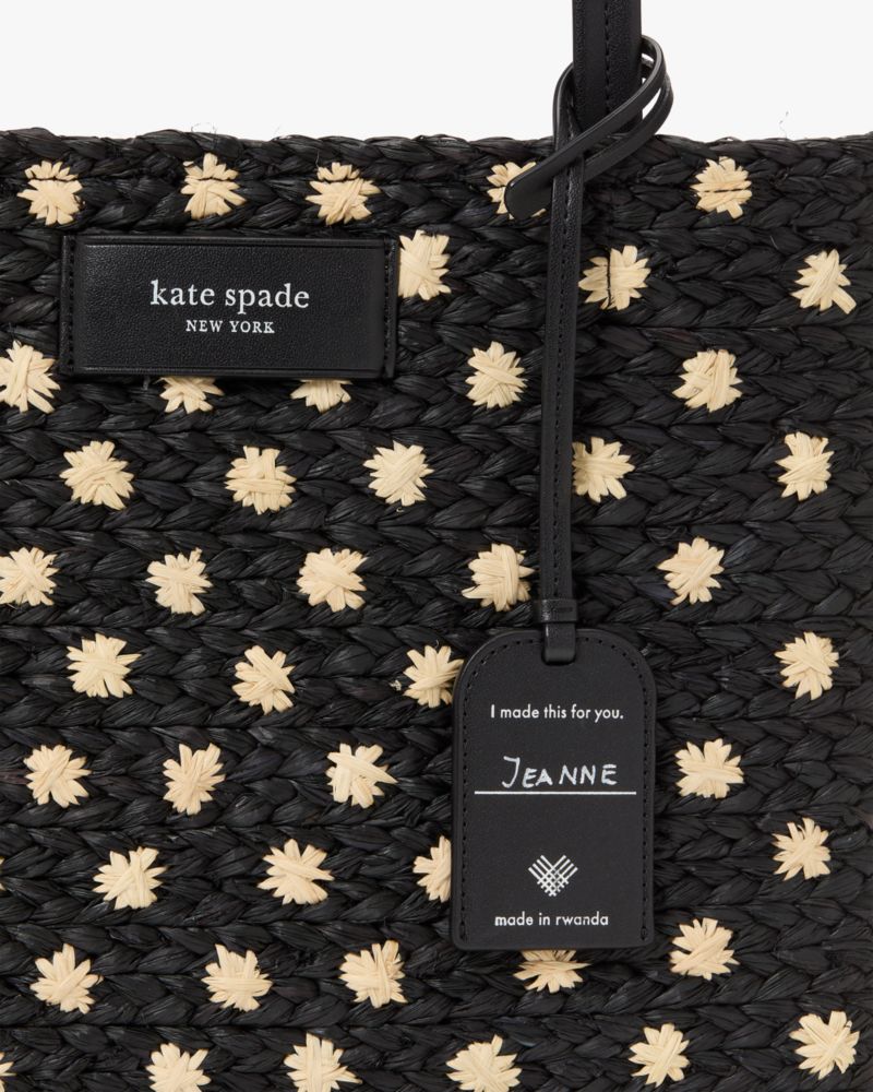 Kate Spade,On Purpose Straw Medium Tote Bag,Raffia,Canvas,Tote,Straw,Applique,Logo,Casual,Black