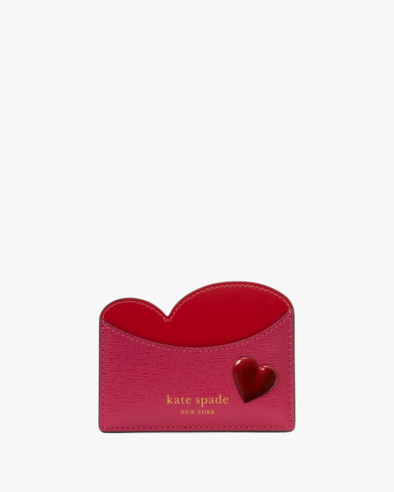 I bought this and the larger Pitter Patter wallet to put my cards in. They take up less room in my handbag than my last wallet. This is small, but I bought it because it's red leather, I love the heart trim and the fact that I bought the wallet to make it a set.