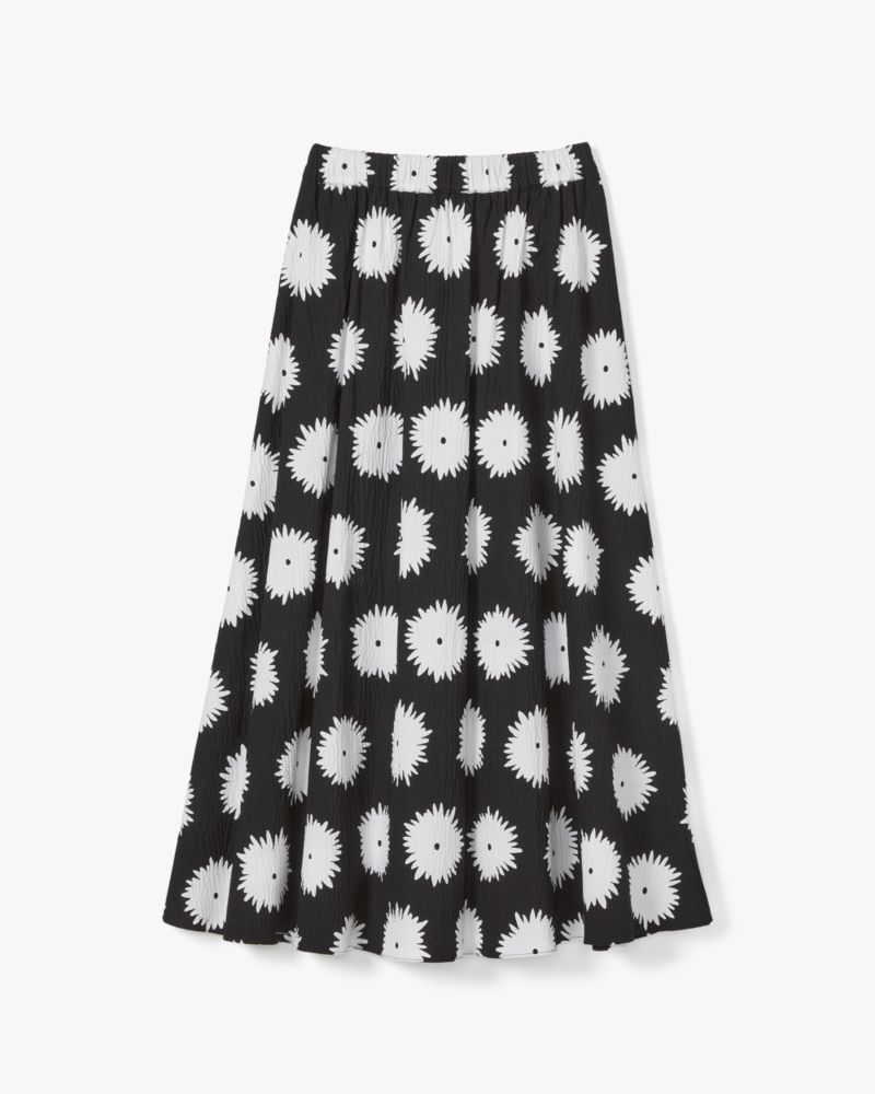 We gave springtime flowers a bold, graphic update. Case in point: this breezy midi skirt in our new Pom Pom Floral seersucker.