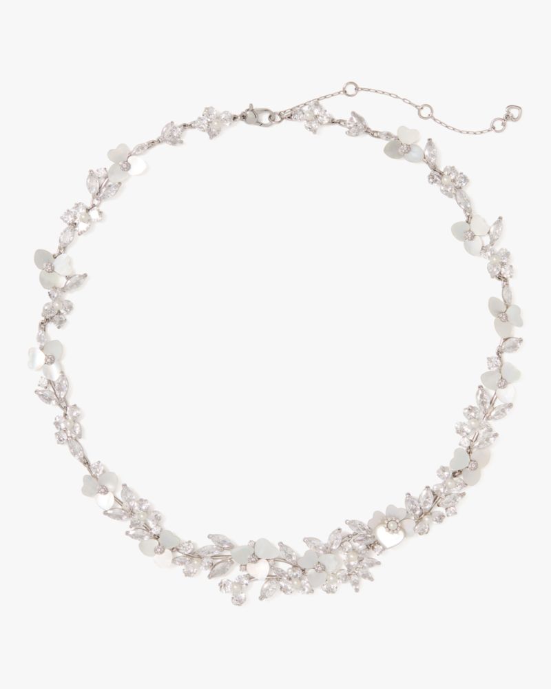 Kate Spade,Precious Pansy Statement Necklace,Single Strand,Choker,Mother of Pearl,Floral Embellishment,Day Party,Clear