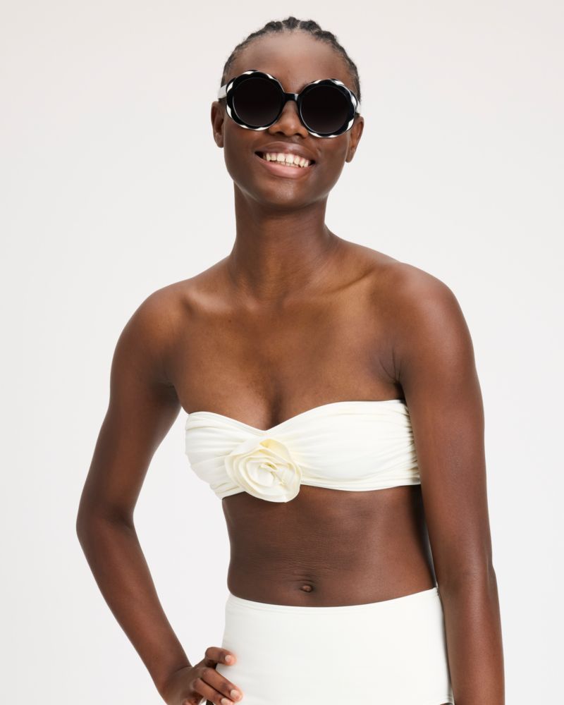 We updated our classic bandeau swim top with a pretty rosette accent.