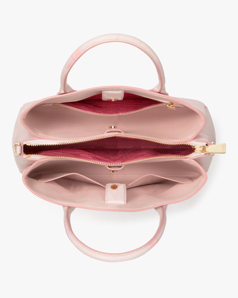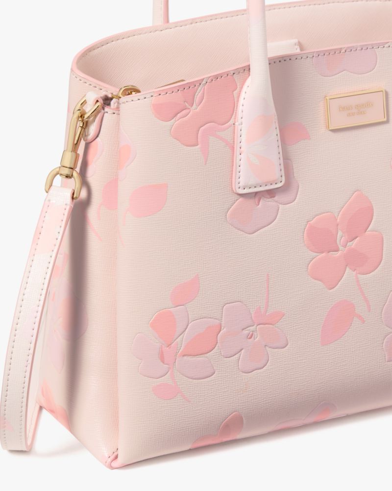 Add instant style to your in-office days with this sophisticated leather satchel. We did this one in our playful Spring Pansies pattern.