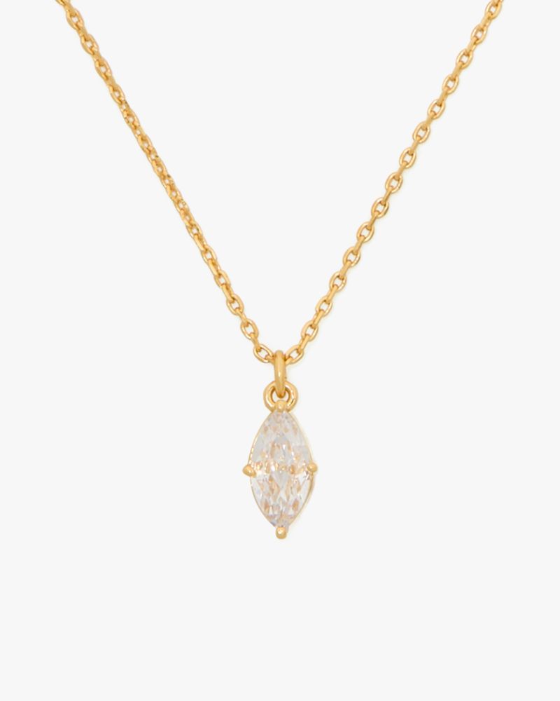 Elevate your jewelry game with this solitaire pendant featuring a marquise-cut crystal.