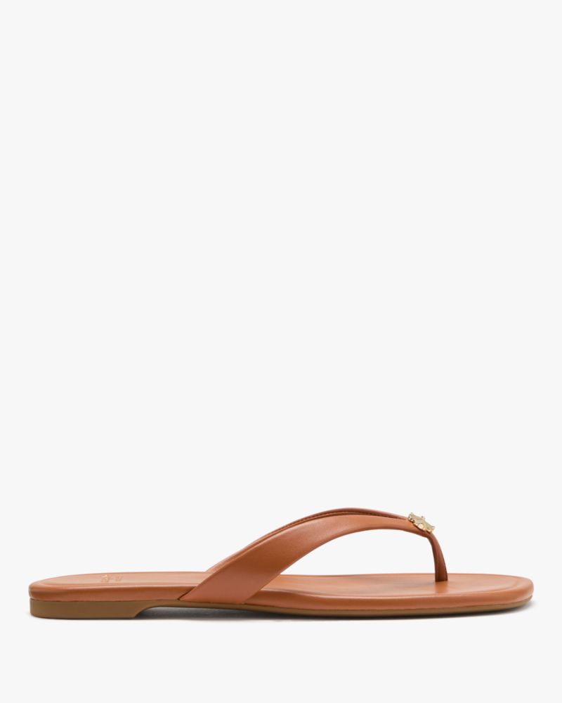 Crafted from chic smooth leather, these sleek flip flops are detailed with our signature Spade Flower motif.