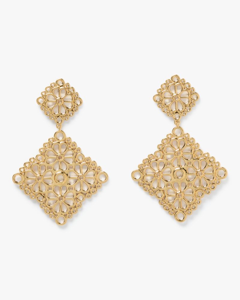 These drop earrings are made from lace-like filigree featuring our Spade Flower motif.