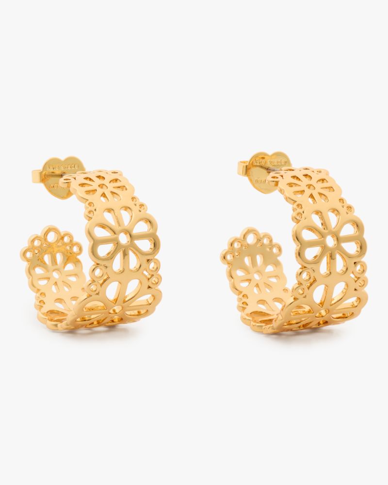 These hoop earrings are made from lace-like filigree featuring our Spade Flower motif.