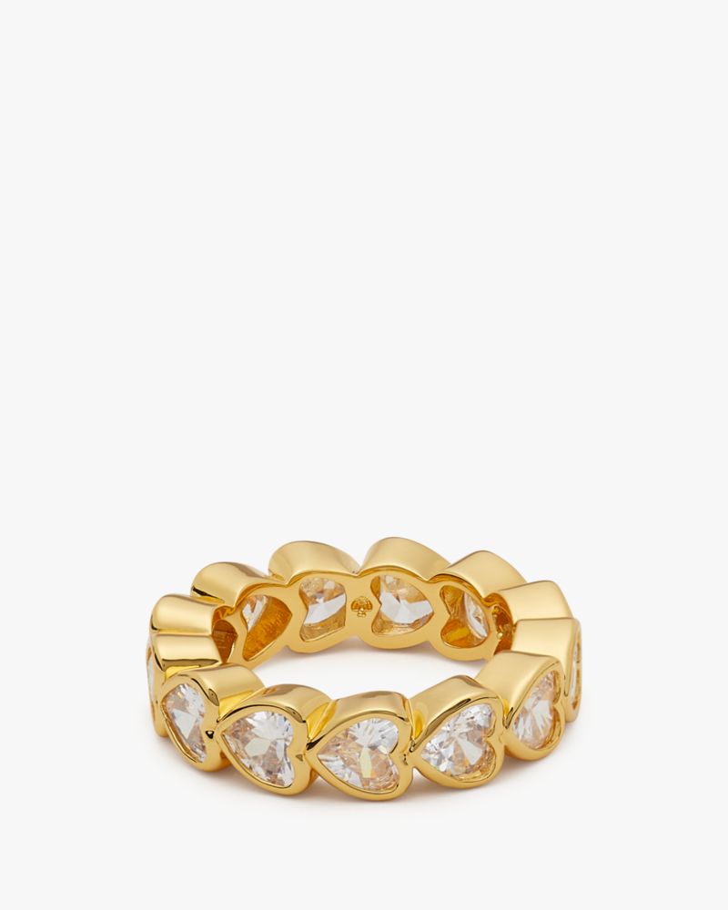 Kate Spade,Sweetheart Eternity Ring,Single Band,Cubic Zirconia,Gem Embellishment,Heart Embellishment,Gold Plated,Yellow Go...,Clear