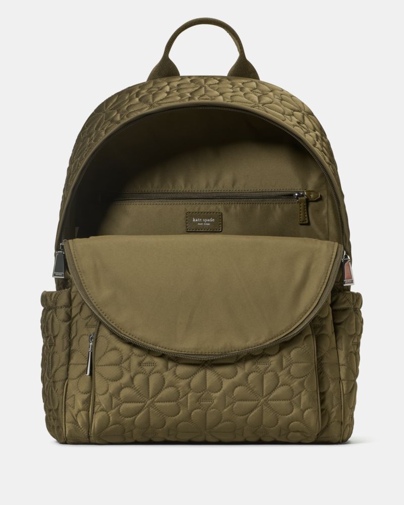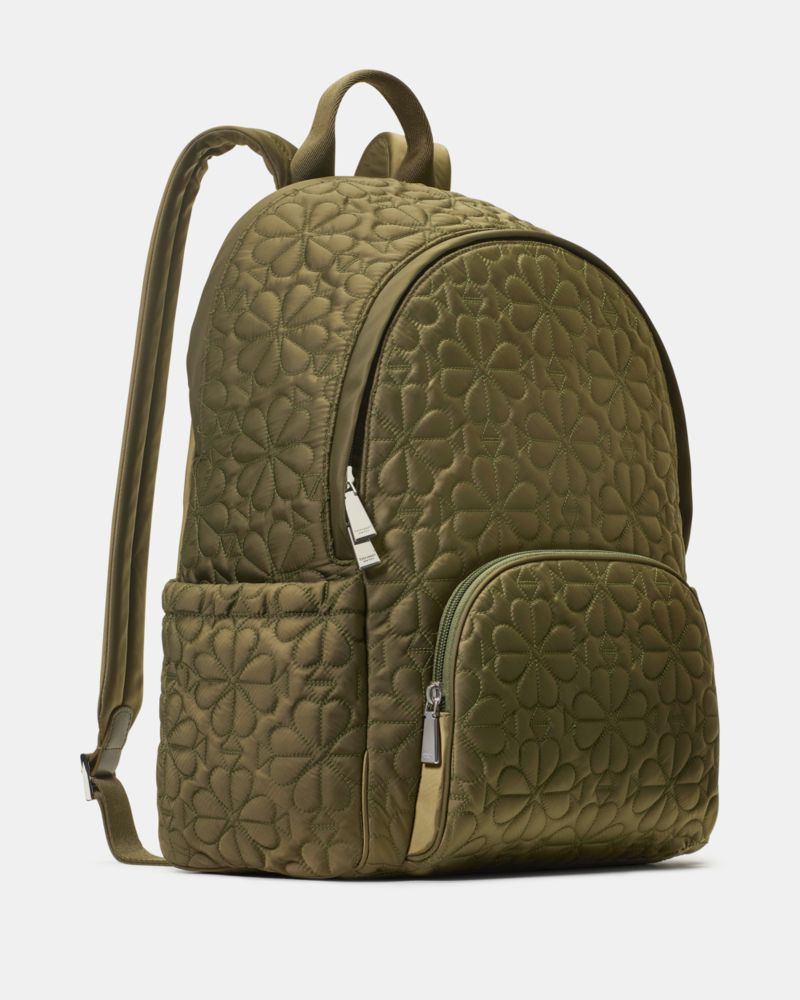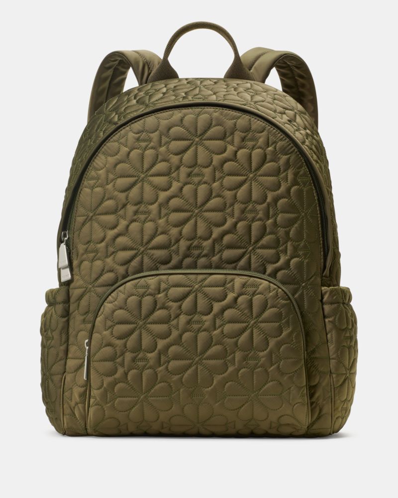 Kate Spade,Tilly Quilted Backpack,Polyester,Nylon,Recycled Polyester,Backpack,Plastic,Logo,Sustainable,Casual,Olive