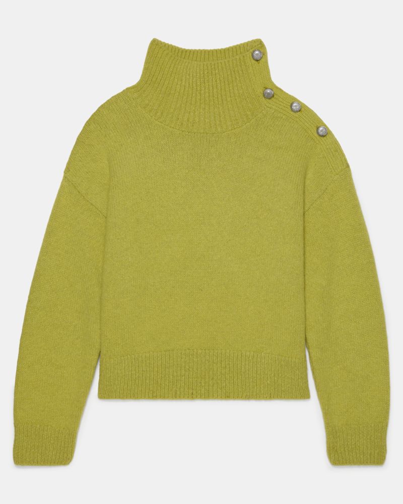 Pretty bauble buttons (with our iconic Spade Flower!) adorn the shoulder of this chic turtleneck sweater.